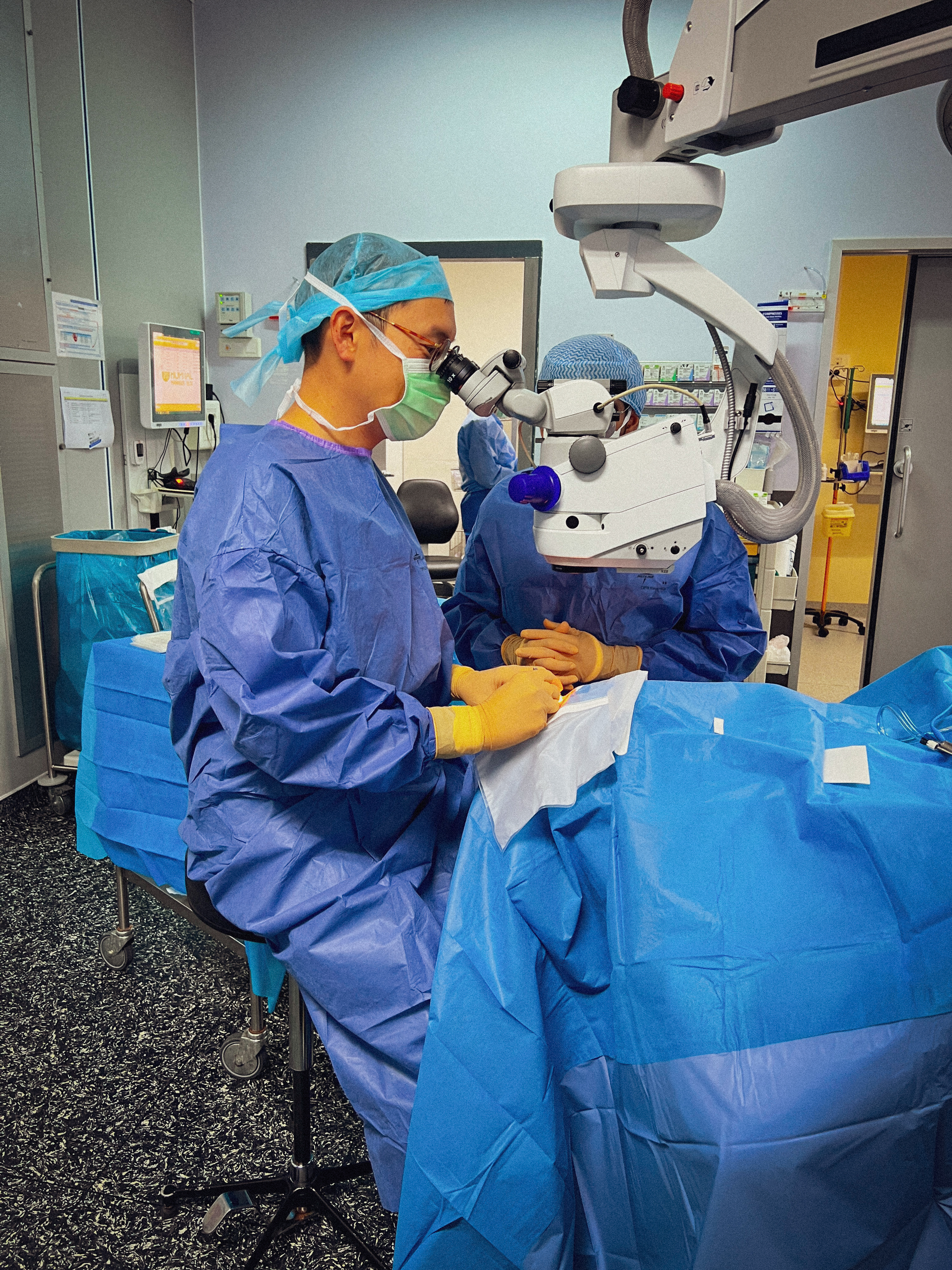 Dr Liem Trinh entrain de réaliser une chirurgie en direct filmée pour un congrès