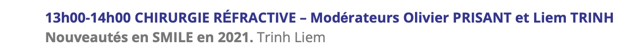 Le Dr Trinh présenta une communication sur les nouveautés en SMILE en 2021.