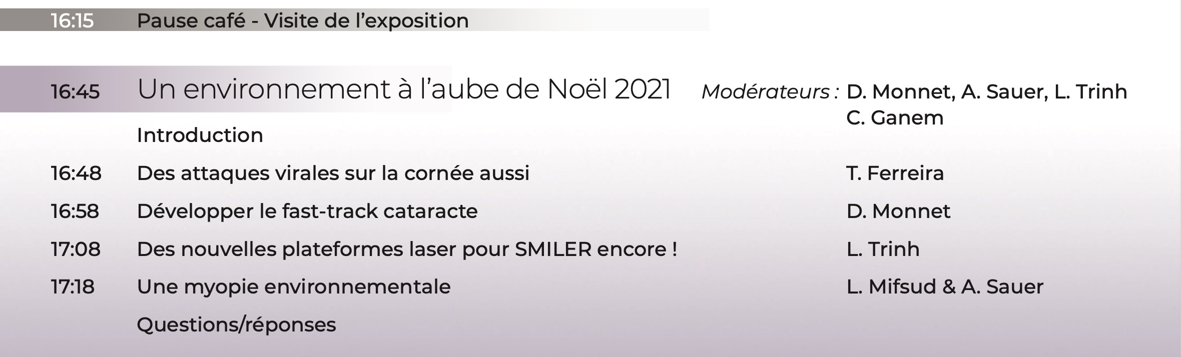 Le Dr Trinh a présenté en vidéo les 3 nouveaux lasers femtoseconde permettant de réaliser les chirurgies réfractives SMILE, tous trois disponibles dès 2022.