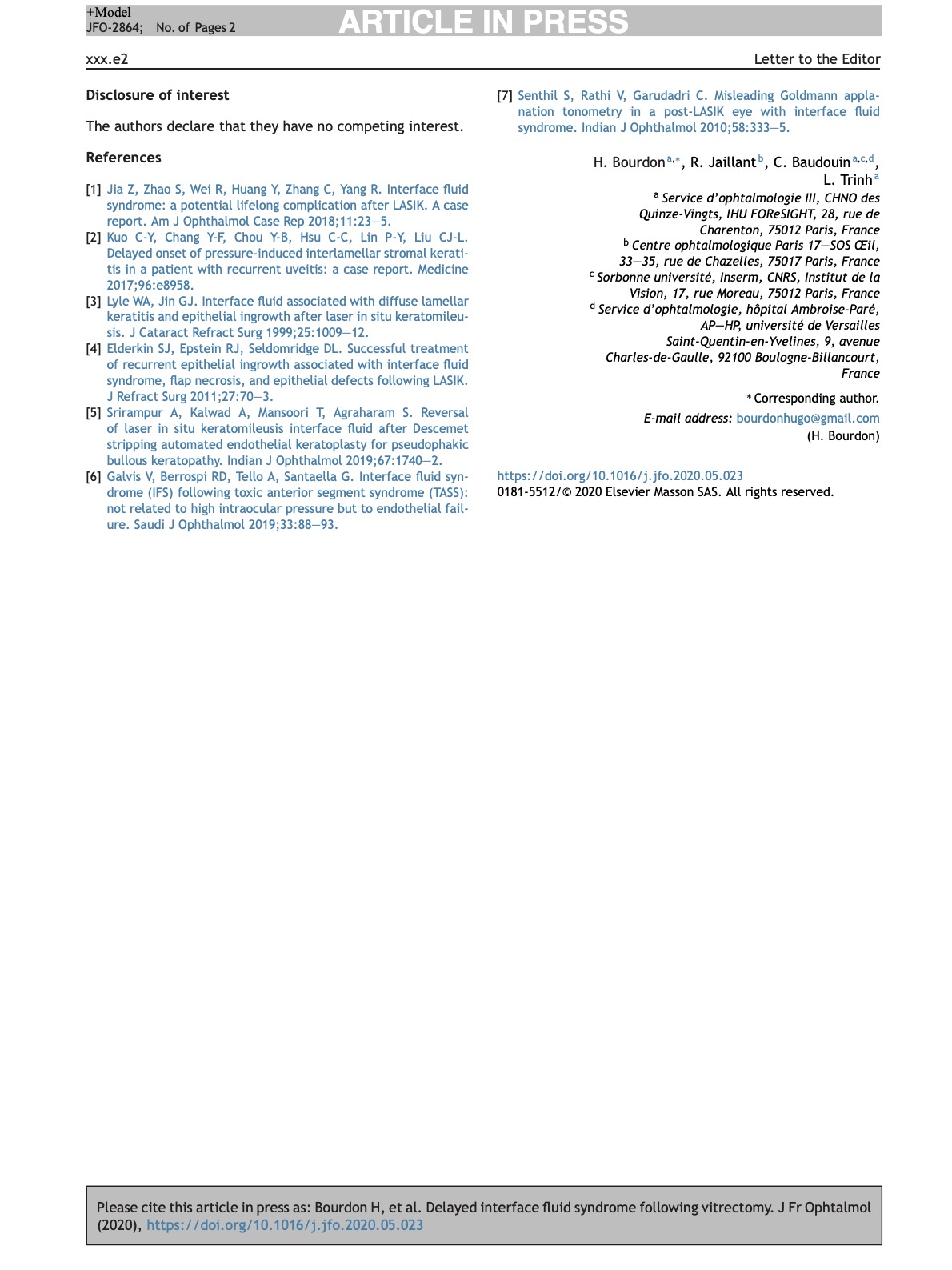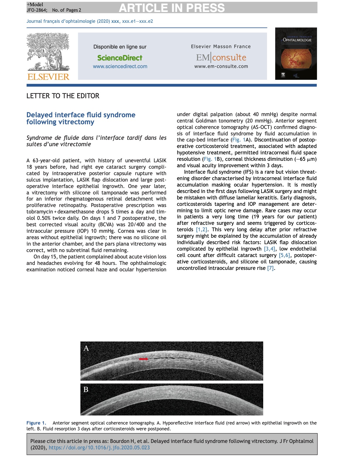 Dr Trinh par Dr. LIEM TRINH | 20 Décembre 2020Le Dr Trinh vient de co-publier une lettre à l'éditeur avec le Dr Hugo Bourdon dans le Journal Français d'Ophtalmologie du mois de décembre 2020 intitulée "Syndrome de fluide dans l'interface tardif dans les suites d'une vitrectomie".
