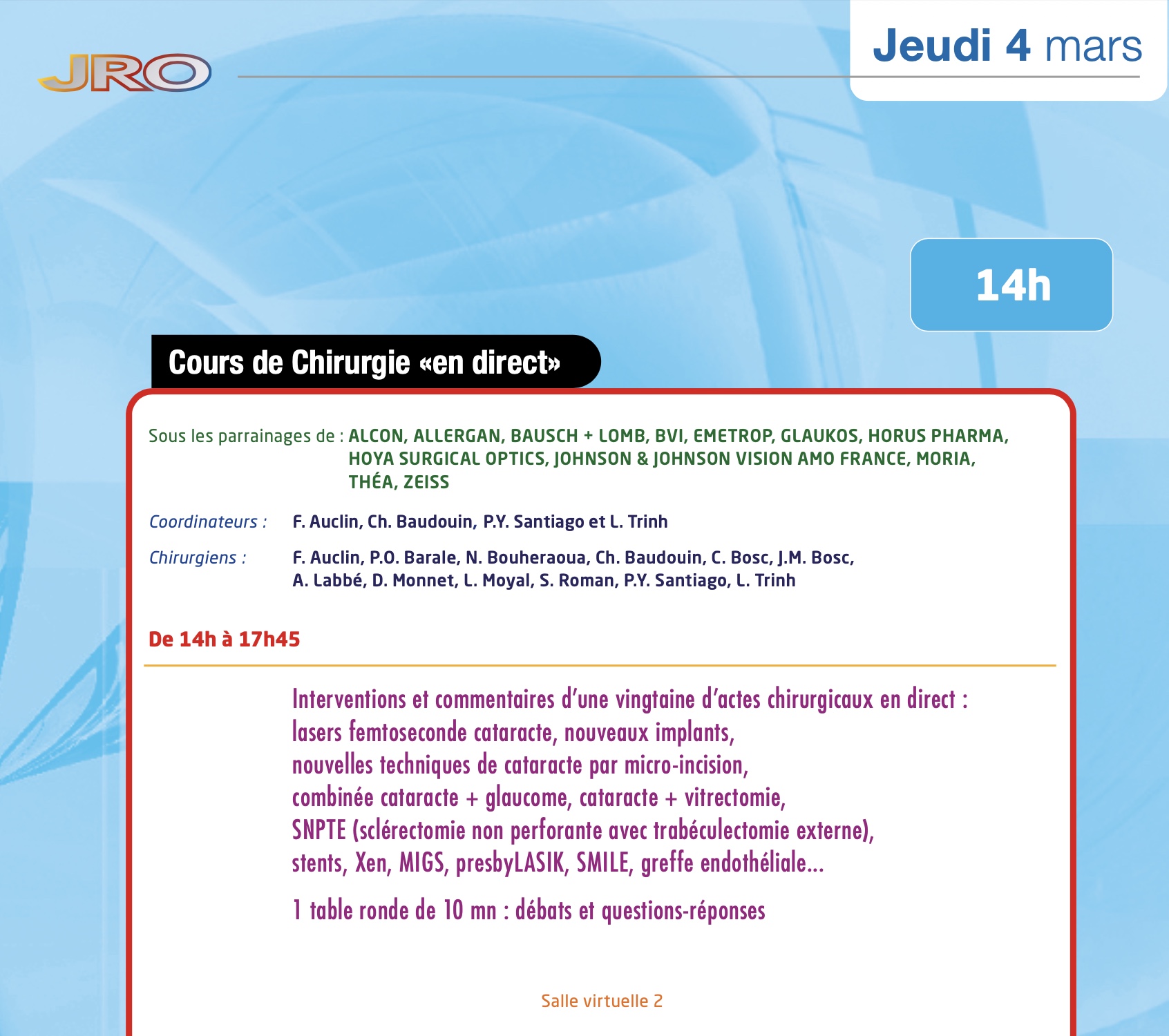 Chirurgie en direct congrès JRO 2021: jeudi 4 mars 2021