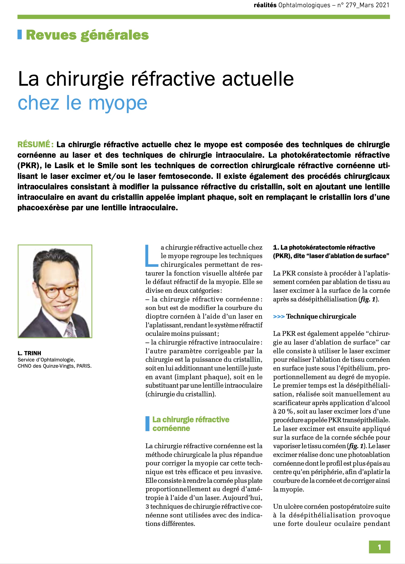 Dr Trinh par Dr. LIEM TRINH | 1 Mai 2021En mars 2021, le Dr Trinh a publié un article sur "La chirurgie réfractive actuelle chez le myope" dans la revue "Réalités Ophtalmologiques".