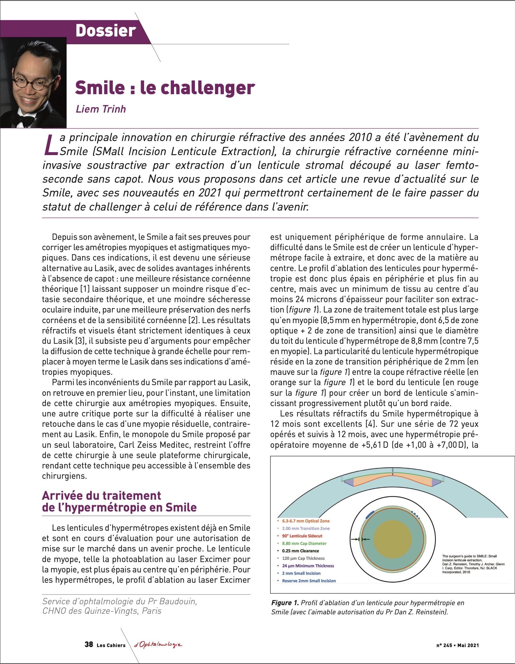 Dr Trinh par Dr. LIEM TRINH | 1 Mai 2021En Mai 2021, le Dr Trinh a publié un article "SMILE: le challenger" dans la revue "Les Cahiers d'Ophtalmologie" dans le cadre d'un dossier sur les techniques de chirurgie réfractive coordonné par le Pr David Touboul.