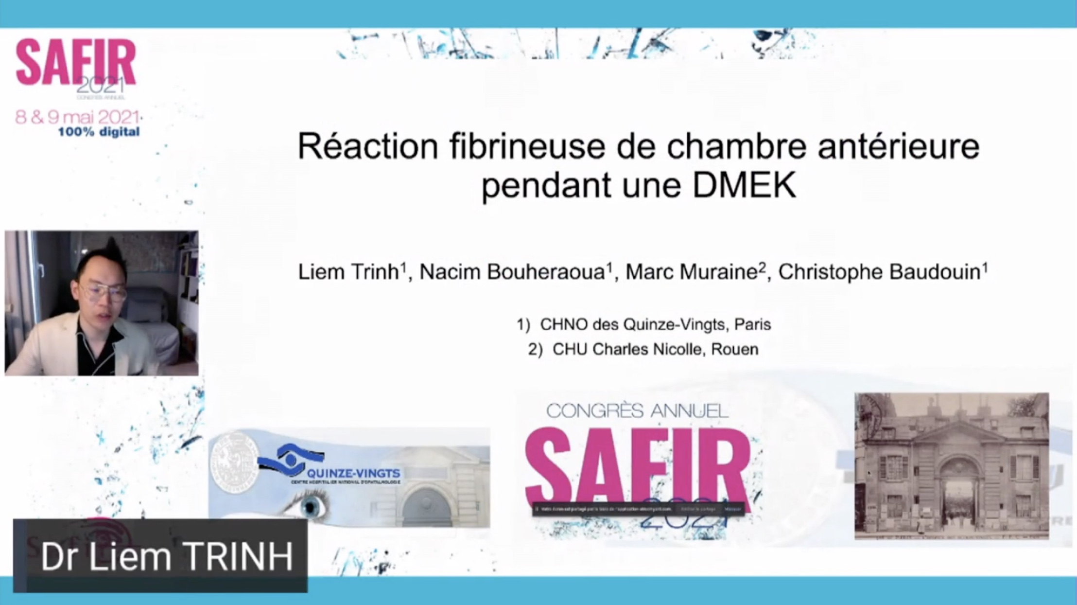 Le lendemain, le Dr Trinh a présenté une communication sur la "Réaction fibrineuse de chambre antérieure pendant une DMEK"